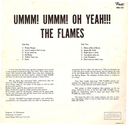 In the history of South African Music, The Flames must rank in the top echelon of performers and recording